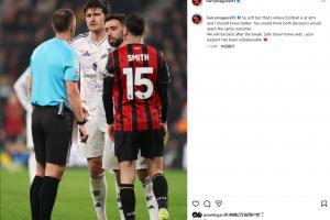 不满!马奎尔发文:红点判罚太牵强了 本以为两个判罚会一样