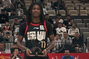 “小孩哥”史密斯领取CBA第二期中国人寿月度最佳国际球员奖杯,恭喜小孩哥!