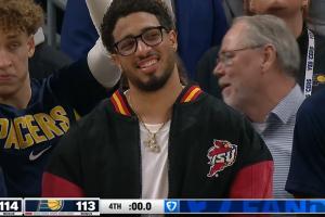 GIF-步行者剩0.4秒!发球直接入筐!自杀了!