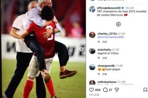 艾克森在社媒配文写道:那年夺得了2013年亚冠联赛冠军,并参加了世俱杯比赛。