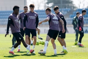 体育资讯3月13日讯 北京时间3月15日凌晨4:00,2025-26赛季西甲联赛第28轮,皇马将坐镇伯纳乌球场迎战埃尔切。今日皇马进行了训练,备战本场比赛。