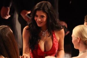 凯莉·詹娜一身深V红色长裙现身,吸引无数目光。