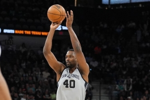 上半场马刺三分线外火力全开,全队24投13中,尚帕尼6中4,巴恩斯3中3。