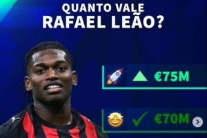 德转预热莱奥身价变化:可能涨至7500万欧,最低降至6000万欧