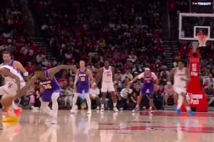 GIF-斯玛特和东契奇在很高的位置包夹,杜兰特失误,斯玛特助攻东契奇三分